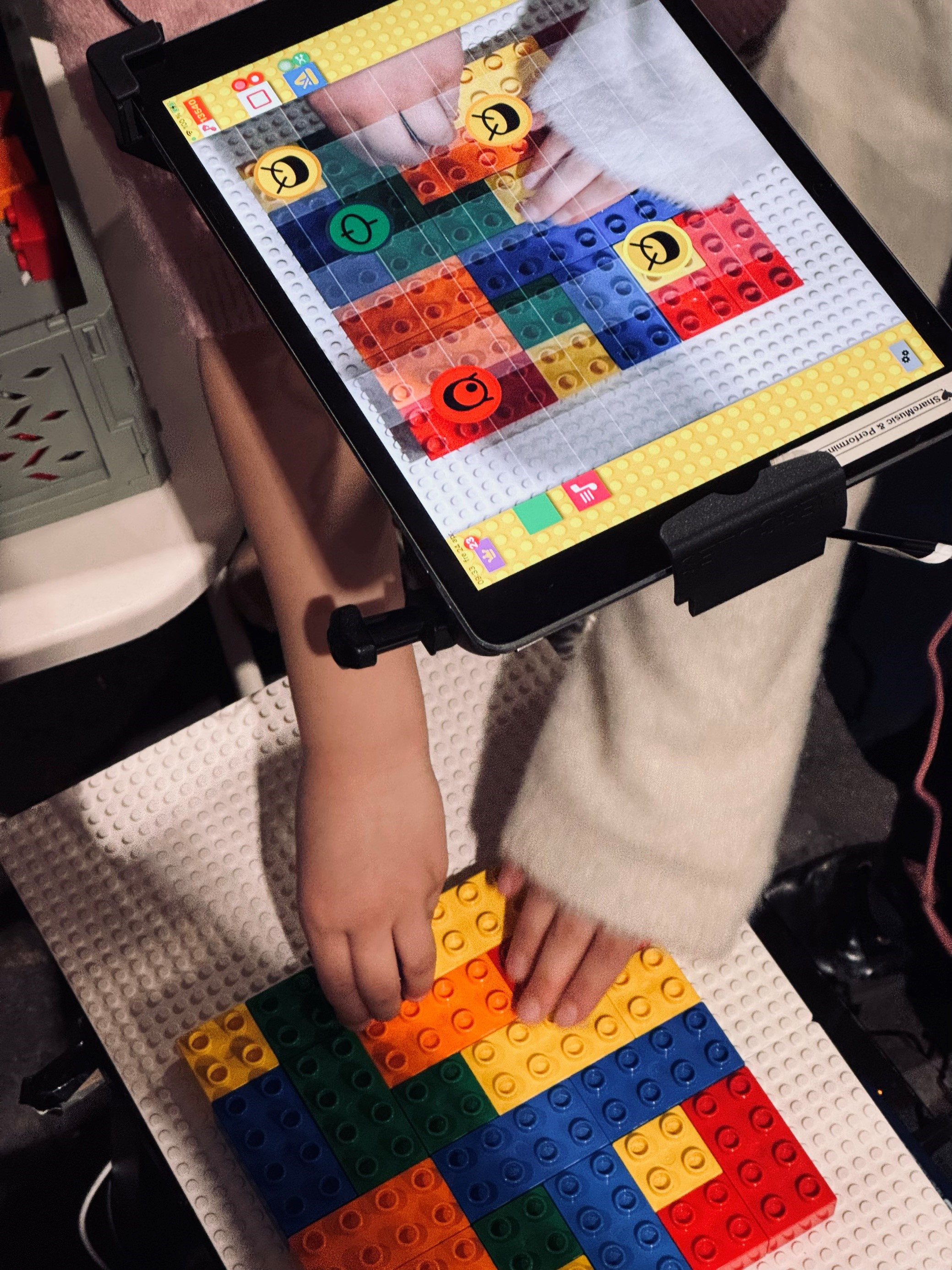 En annan station som väckte nyfikenhet och skaparlust var "Spela med Lego", och många stannade länge. Barnen byggde, testade, tog bort, lade till och lyssnade. Ibland själva, ibland tillsammans. Någon började digga, andra dansade. Här användes BeatBlocks, där byggklossar blir till musikaliska byggstenar.