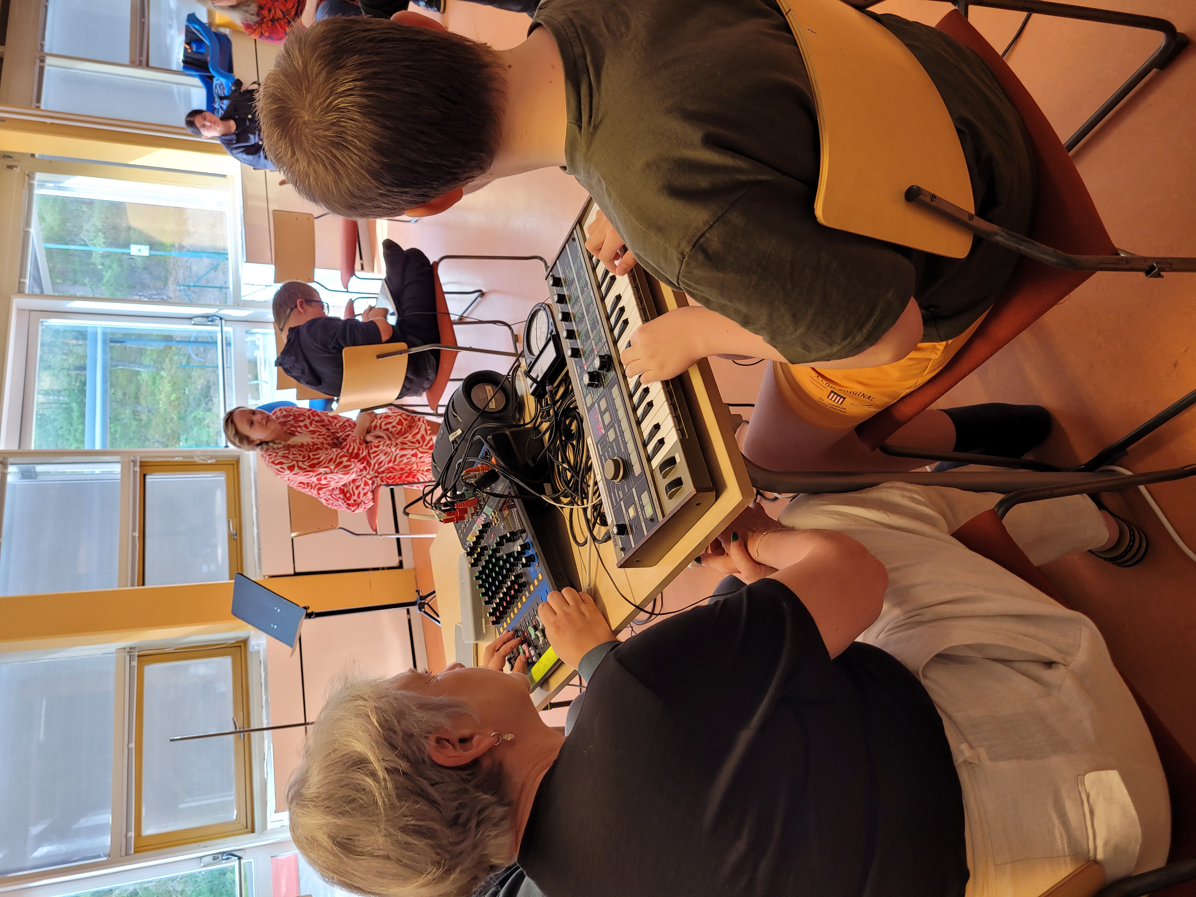 Under våren besökte vi våra inspirationsskolor och tillsammans med pedagoger och elever utforskade vi hur elektroniska och digitala instrument (EDI) kan användas i musikundervisningen. Tosterö anpassade skola i Strängnäs, Peder Skrivares skola i Varberg och Örnsköldsviks anpassade skola deltog, och deras insikter har gett oss värdefull kunskap. Dessa erfarenheter blir nu grunden för höstens arbete på vår pilotskola i Eskilstuna, där vi fokuserar på repertoarutveckling, alternativa notationer och långsiktigt hållbara metoder för en mer inkluderande musikundervisning.